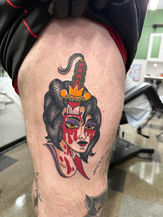 Poli has been a full time artist at Rabbits Den since 2025. He creates custom designs with an influence from traditional tattooing, and is just as comfortable with color and black and gray.